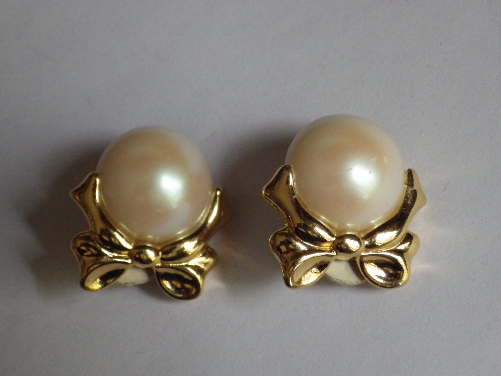 Plaqué or avec demie perle (synthétique ?) au centre d’un nœud